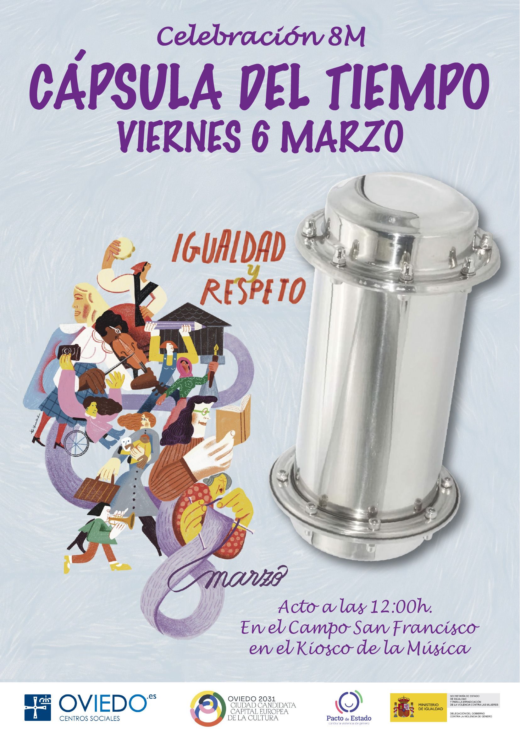 Te invitamos a participar en un acto simbólico y participativo con motivo del 8M: la creación de nuestra «Cápsula del Tiempo». Un espacio donde recogeremos testimonios, deseos y compromisos por el respeto y la igualdad de género en nuestra ciudad.