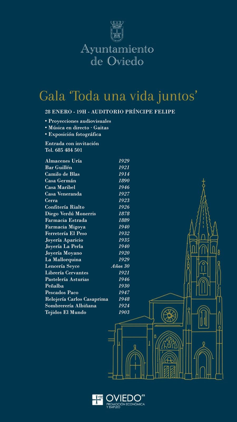 El Ayuntamiento de Oviedo organiza la gala Toda una vida juntos, un homenaje a comercios históricos que forman parte de la memoria y la vida de la ciudad.
