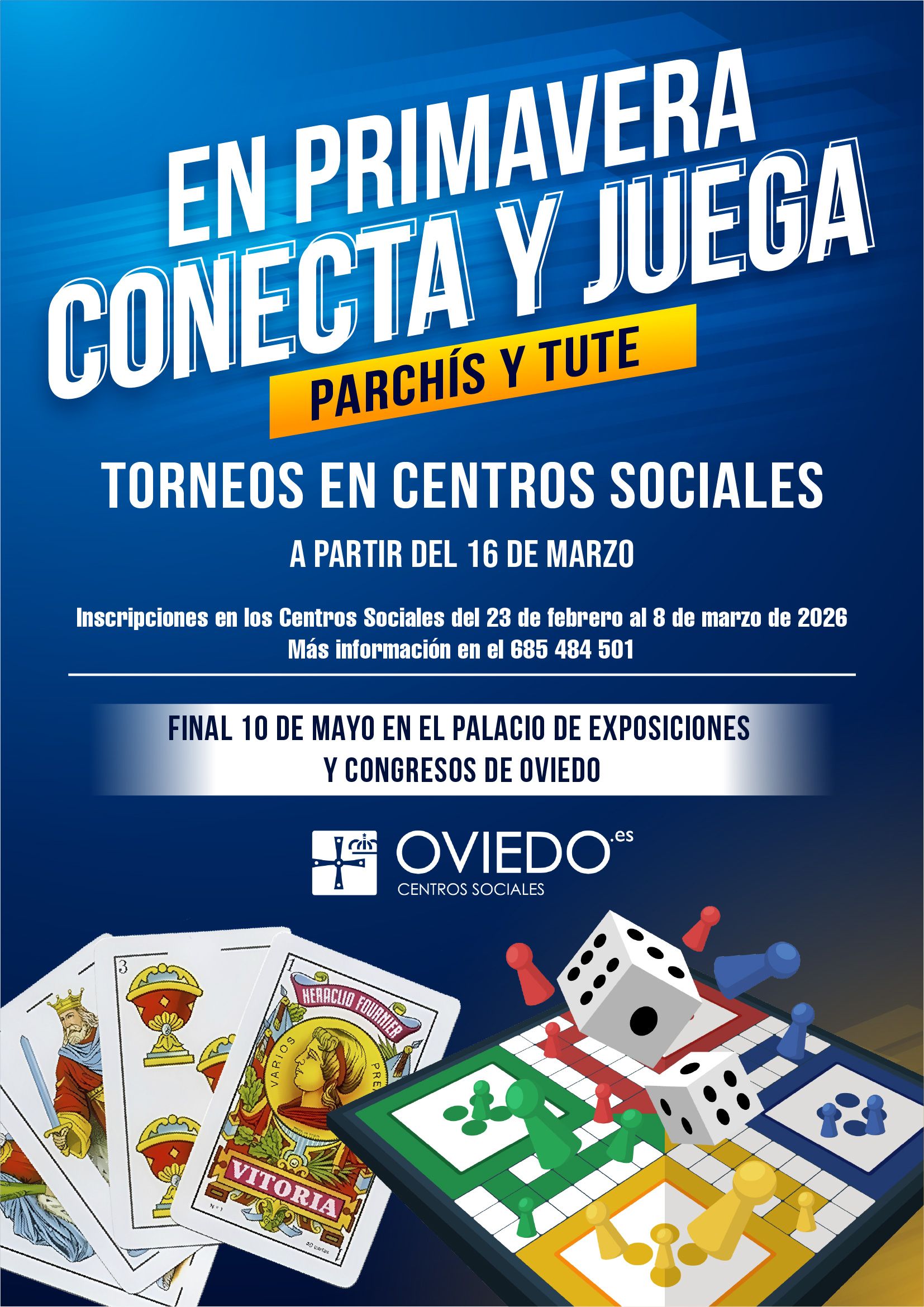 Desde el día 23 de febrero al 8 de marzo de 2026 se podrán inscribir en los centros sociales del Ayuntamiento de Oviedo todas las personas mayores de edad que quieran participar en dichos torneos, que tendrán lugar a partir del 16 de marzo en los diferentes centros de la Red.